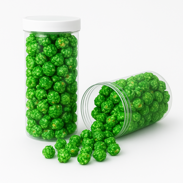 Say hello to a tangy twist with Green Apple Giggles Popcorn! Each crunchy kernel is coated in a shiny green glaze packed with sweet and slightly sour green apple flavor — just like your favorite candy! It’s a fun, fruity treat that makes snack time exciting and full of smiles. Perfect for lunchboxes, party favors, or anytime munching, this popcorn is a pop of green goodness that kids will love to crunch!