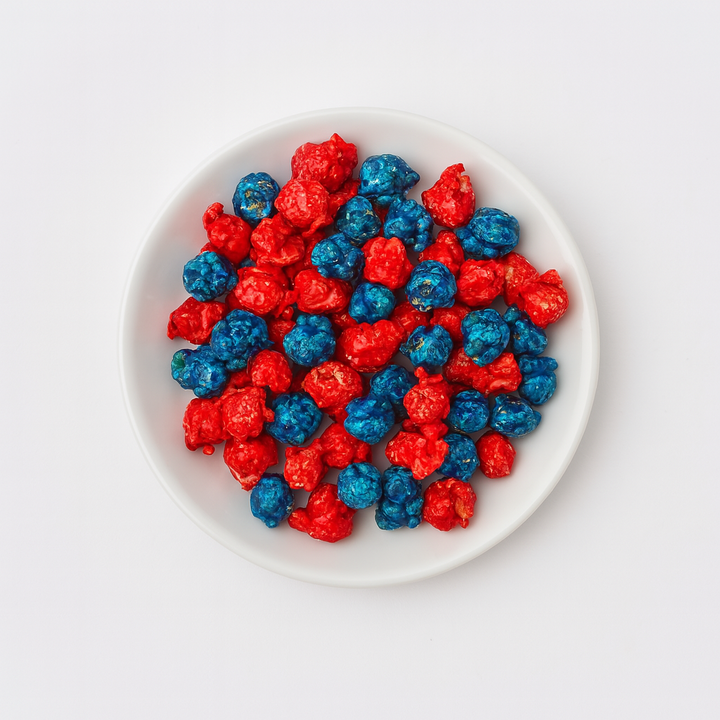 Navy Blue and Red Candy Coated Popcorn - Blueberry Cherry 16oz Container