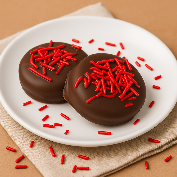Red Sprinkles Dark Chocolate Coated Sandwich Cookies 1 Dozen